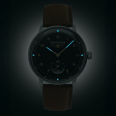 Zegarek marki Bauhaus ma stal chirurgiczna kopertę 35 mm średnicy i jest wyposażony w pasek z materiału skóra. Wewnątrz koperty jest mechanizm Ronda i zegarek ma także szkiełko K1 Mineral.