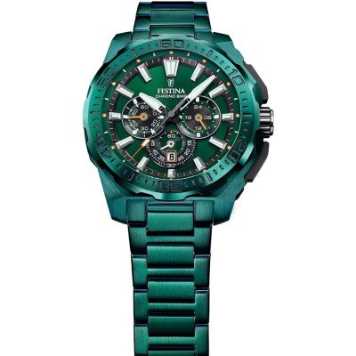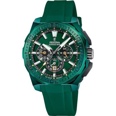 Zegarek marki Festina ma stal chirurgiczna kopertę 45.5 mm średnicy i jest wyposażony w pasek z materiału stal chirurgiczna. Wewnątrz koperty jest mechanizm Miyota i zegarek ma także szkiełko Mineralny.