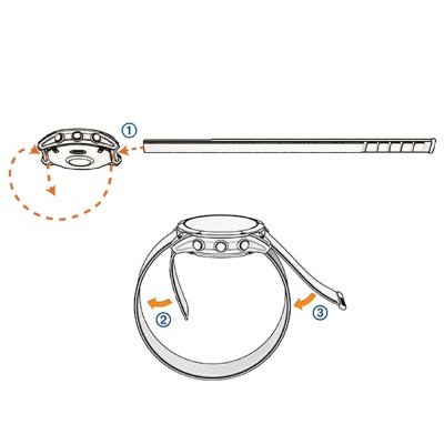 Pasek do zegarka Garmin jest wykonany z materiału z materiału i jest zamocowany do zegarka za pomocą… kołki sprężyste. Ten pasek ma szerokość 26 mm i zamyka się za pomocą zapięcie na rzep. Ten pasek ma proste mocowanie, co oznacza, że pasuje do.