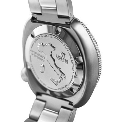 Zegarek marki Ligure ma stal chirurgiczna kopertę 41 mm średnicy i jest wyposażony w pasek z materiału stal chirurgiczna. Wewnątrz koperty jest mechanizm Sellita i zegarek ma także szkiełko Sapphire.