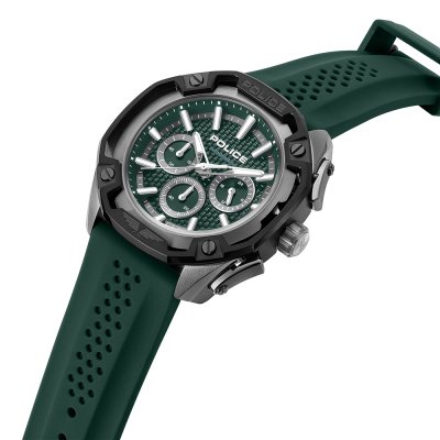 Zegarek marki Police ma stal chirurgiczna kopertę 46 mm średnicy i jest wyposażony w pasek z materiału guma. Wewnątrz koperty jest mechanizm Seiko Instruments Inc. i zegarek ma także szkiełko Mineralny.