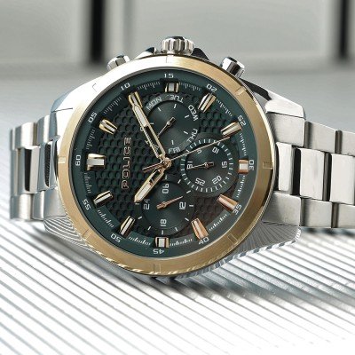 Zegarek marki Police ma stal chirurgiczna kopertę 45 mm średnicy i jest wyposażony w pasek z materiału stal chirurgiczna. Wewnątrz koperty jest mechanizm Seiko Instruments Inc. i zegarek ma także szkiełko Mineralny.