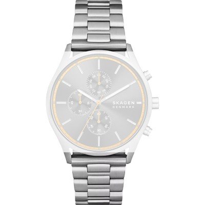 Pasek do zegarka Skagen jest wykonany z materiału stal nierdzewna i jest zamocowany do zegarka za pomocą… bolec quick release. Ten pasek ma szerokość 22 mm i zamyka się za pomocą zapięcie zatrzaskowe z przyciskami. Ten pasek ma proste mocowanie, co oznacza, że pasuje do.