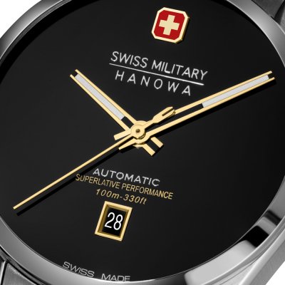 Zegarek marki Swiss Military Hanowa ma stal chirurgiczna kopertę 41 mm średnicy i jest wyposażony w pasek z materiału stal chirurgiczna. Wewnątrz koperty jest mechanizm Soprod i zegarek ma także szkiełko Sapphire.