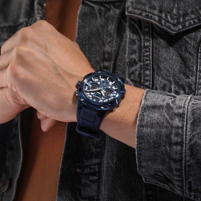 This Police watch has a case made of stainless steel with a diameter of 46 mm and is fitted with a rubber band. Inside the case lies a Seiko Instruments Inc. movement and the watch features a Mineral crystal.