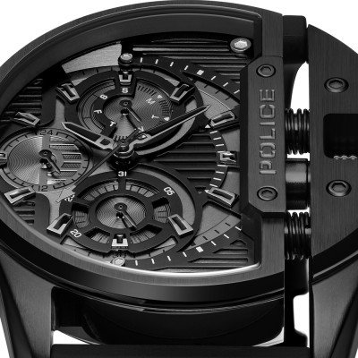 This Police watch has a case made of stainless steel with a diameter of 45 mm and is fitted with a rubber band. Inside the case lies a Seiko Instruments Inc. movement and the watch features a Mineral crystal.