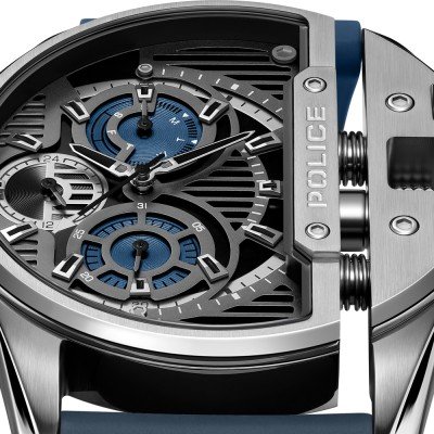 This Police watch has a case made of stainless steel with a diameter of 48 mm and is fitted with a rubber band. Inside the case lies a Seiko Instruments Inc. movement and the watch features a Mineral crystal.