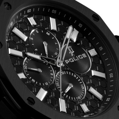 This Police watch has a case made of stainless steel with a diameter of 42 mm and is fitted with a rubber band. Inside the case lies a Seiko Instruments Inc. movement and the watch features a Mineral crystal.