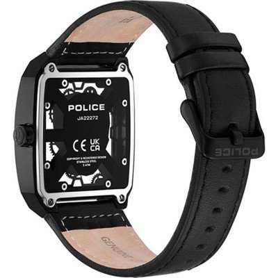 This Police watch has a case made of stainless steel with a diameter of 39 mm and is fitted with a leather band. Inside the case lies a Miyota movement and the watch features a Mineral crystal.