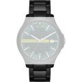 Esta bracelete de relógio Armani Exchange é feita de aço inoxidável e está fixada ao relógio através de pinos de pressão. A bracelete tem uma largura de 22 mm e fecha através de fivela dobrável com botões de pressão. A bracelete não tem uma montagem a direito, o que significa que esta bracelete só é adequada para os relógios listados abaixo.