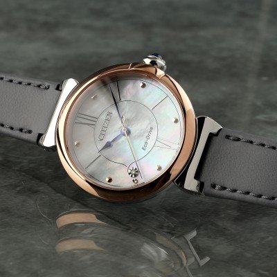 Este relógio Citizen tem uma caixa de Inox com um diâmetro de 29.5 mm e está equipado com uma bracelete de Couro sintético. A caixa possui um movimento Citizen e o relógio tem um vidro Safira.
