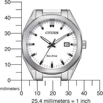 Este relógio Citizen tem uma caixa de Inox com um diâmetro de 38 mm e está equipado com uma bracelete de Inox. A caixa possui um movimento Citizen e o relógio tem um vidro Mineral.
