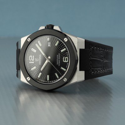 Este relógio Festina tem uma caixa de Inox com um diâmetro de 42 mm e está equipado com uma bracelete de borracha. A caixa possui um movimento Ronda e o relógio tem um vidro Safira.