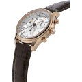 Este Calendário Triplo Cronógrafo Clássico é acionado por um movimento de quartzo FC-296, (baseado num Ronda 5040.F). Apresenta horas, minutos, segundos, mês, dia, ponteiro de data com ponta de seta e cronógrafo. Oferece precisão e fiabilidade total. O mostrador refinado, com três submostradores de cronógrafo, é perfeitamente claro e pormenorizado. Um mostrador de alto contraste, com uma linha férrea de minutos/segundos a circundar o mostrador, bem como ponteiros finos em forma de folha, conferem ao relógio um aspeto clássico e retro, ao mesmo tempo que é totalmente moderno.