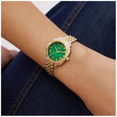 Este relógio GC tem uma caixa de Inox com um diâmetro de 28 mm e está equipado com uma bracelete de Inox. A caixa possui um movimento Ronda e o relógio tem um vidro Safira.