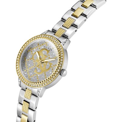 Este relógio Guess tem uma caixa de Inox com um diâmetro de 34 mm e está equipado com uma bracelete de Inox. A caixa possui um movimento Seiko e o relógio tem um vidro Mineral.