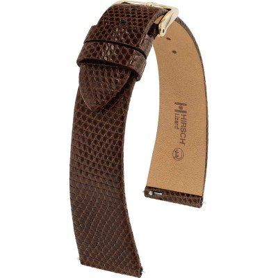 Esta bracelete de relógio Hirsch é feita de couro e está fixada ao relógio através de pinos carregados por mola de liberação rápida. A bracelete tem uma largura de 18 mm e fecha através de fecho. A bracelete tem uma montagem a direito, o que significa que esta bracelete é adequada para todos os relógios com montagem da bracelete a direito.