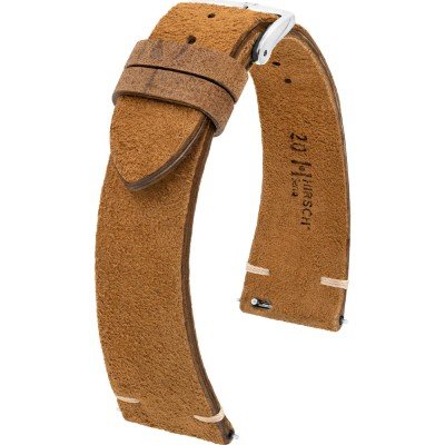 Esta bracelete de relógio Hirsch é feita de couro e está fixada ao relógio através de pinos carregados por mola de liberação rápida. A bracelete tem uma largura de 20 mm e fecha através de fecho. A bracelete tem uma montagem a direito, o que significa que esta bracelete é adequada para todos os relógios com montagem da bracelete a direito.