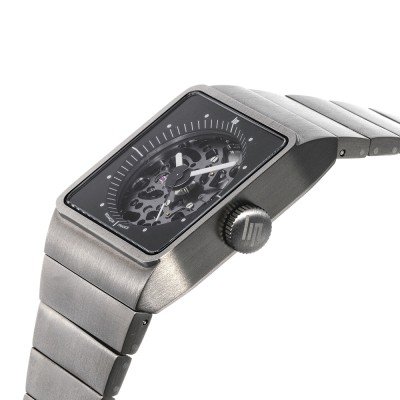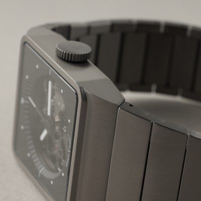 O pai do design francês moderno, Roger Tallon, concebeu a série de relógios Lip Big TV nos anos noventa. A caixa quadrada robusta e a bracelete robusta conferem ao relógio um toque retro, ao mesmo tempo que os detalhes de design como a coroa, o logótipo e o mostrador rebaixado têm um inconfundível apelo intemporal e moderno. Esta última adição à família Lip Big TV é uma reinterpretação contemporânea com um movimento de corda automática e uma caixa totalmente em titânio. A liga confere-lhe linhas sóbrias e puras, mantendo o design do modelo original. A versão esqueleto deste relógio apresenta um movimento em tom de titânio, que pode ser admirado através do fundo de caixa transparente.