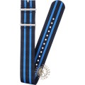 Esta bracelete de relógio Maurice Lacroix é feita de tecido e está fixada ao relógio através de pinos de pressão. A bracelete tem uma largura de 22 mm. A bracelete tem uma montagem a direito, o que significa que esta bracelete é adequada para todos os relógios Maurice Lacroix com montagem da bracelete a direito.