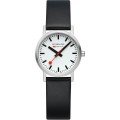 Este relógio Mondaine tem uma caixa de Inox com um diâmetro de 30 mm e está equipado com uma bracelete de Couro vegan. A caixa possui um movimento Ronda e o relógio tem um vidro Mineral.