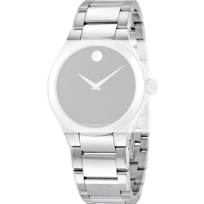 Esta bracelete de relógio Movado é feita de aço inoxidável e está fixada ao relógio através de pinos em aço. A bracelete tem uma largura de 21 mm e fecha através de fivela butterfly com botões de pressão. A bracelete não tem uma montagem a direito, o que significa que esta bracelete só é adequada para os relógios listados abaixo.