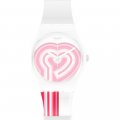 Esta bracelete de relógio Swatch é feita de silicone e está fixada ao relógio através de pinos em aço. A bracelete tem uma largura de 17 mm e fecha através de fecho. A bracelete não tem uma montagem a direito, o que significa que esta bracelete só é adequada para os relógios listados abaixo.