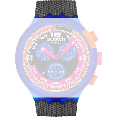 Esta bracelete de relógio Swatch é feita de plástico de origem biológica e está fixada ao relógio através de pinos em aço. A bracelete tem uma largura de 19.7 mm e fecha através de fecho. A bracelete não tem uma montagem a direito, o que significa que esta bracelete só é adequada para os relógios listados abaixo.