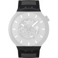 Esta bracelete de relógio Swatch é feita de silicone e está fixada ao relógio através de pinos em aço. A bracelete tem uma largura de 19.7 mm e fecha através de fecho. A bracelete não tem uma montagem a direito, o que significa que esta bracelete só é adequada para os relógios listados abaixo.