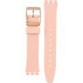 Esta bracelete de relógio Swatch é feita de silicone e está fixada ao relógio através de pinos em aço. A bracelete tem uma largura de 17 mm e fecha através de fecho. A bracelete não tem uma montagem a direito, o que significa que esta bracelete só é adequada para os relógios listados abaixo.