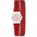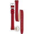 Esta bracelete de relógio Swatch é feita de têxtil/Couro e está fixada ao relógio através de pinos em aço. A bracelete tem uma largura de 12 mm e fecha através de fecho. A bracelete não tem uma montagem a direito, o que significa que esta bracelete só é adequada para os relógios listados abaixo.