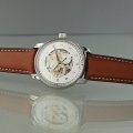 Este relógio Zeppelin tem uma caixa de Inox com um diâmetro de 42 mm e está equipado com uma bracelete de couro. A caixa possui um movimento Miyota e o relógio tem um vidro K1 Mineral.
