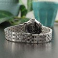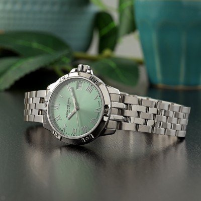 This Raymond Weil watch has a case made of stainless steel with a diameter of 30 mm and is fitted with a stainless steel band. Inside the case lies a ETA movement and the watch features a Sapphire crystal.