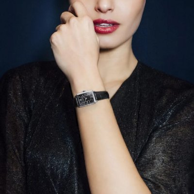 Square- and rectangular-faced watches that were a popular style in the Art Deco era, are making a comeback. This new ladies Toccata model combines the sophisticated Art Deco appeal with an elongated rectangular face and slim 6.25 mm case. This is Raymond Weil’s shallowest case design to date which gives a very sleek profile to the watch. The tiered design gives this watch an illusion of depth without the thickness. The watch is completed with RW monogram on the crown. The rectangular Toccata is available in several combinations of black roman numerals on a crisp white dial or alternating gold & diamond indexes on a mother-of-pearl face.