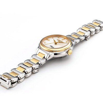 This Roamer watch has a case made of stainless steel with a diameter of 32 mm and is fitted with a stainless steel band. Inside the case lies a Ronda movement and the watch features a Sapphire crystal.