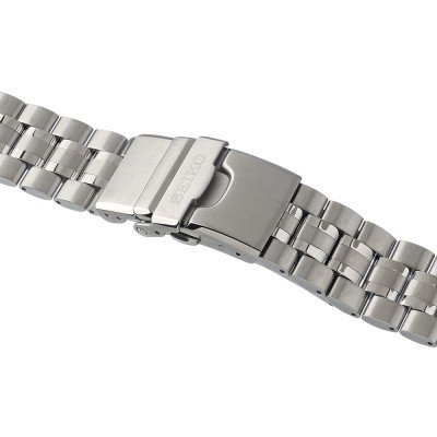 This Seiko watch strap is made of stainless steel and is attached to the watch by means of pushpins. The band has a width of 20 mm and is closed by means of a deployment clasp with push buttons and safety. The strap has no straight mount which means that this strap is only suitable for the watches listed below.