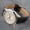 This Seiko watch has a case made of stainless steel with a diameter of 39.4 mm and is fitted with a leather band. Inside the case lies a Seiko movement and the watch features a Sapphire crystal.
