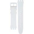 This Swatch watch strap is made of silicone and is attached to the watch by means of steel pins. The band has a width of 19.7 mm and is closed by means of a buckle. The strap has no straight mount which means that this strap is only suitable for the watches listed below.