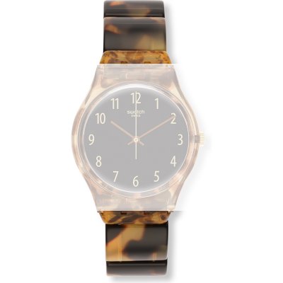This Swatch watch strap is made of plastic/Resin and is attached to the watch by means of steel pins. The band has a width of 17 mm. The strap has no straight mount which means that this strap is only suitable for the watches listed below.