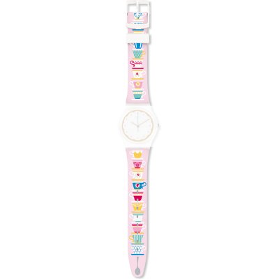 This Swatch watch strap is made of silicone and is attached to the watch by means of steel pins. The band has a width of 17 mm and is closed by means of a buckle. The strap has no straight mount which means that this strap is only suitable for the watches listed below.