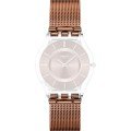 This Swatch watch strap is made of stainless steel and is attached to the watch by means of steel pins. The band has a width of 16.5 mm and is closed by means of a milanese clasp. The strap has no straight mount which means that this strap is only suitable for the watches listed below.