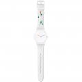 This Swatch watch strap is made of silicone and is attached to the watch by means of steel pins. The band has a width of 19.7 mm and is closed by means of a buckle. The strap has no straight mount which means that this strap is only suitable for the watches listed below.