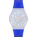 This Swatch watch strap is made of silicone/Rubber and is attached to the watch by means of steel pins. The band has a width of 17 mm and is closed by means of a buckle. The strap has no straight mount which means that this strap is only suitable for the watches listed below.