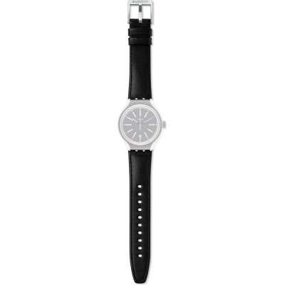 This Swatch watch strap is made of leather and is attached to the watch by means of steel pins. The band has a width of 18.1 mm and is closed by means of a buckle. The strap has no straight mount which means that this strap is only suitable for the watches listed below.