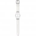This Swatch watch strap is made of leather and is attached to the watch by means of steel pins. The band has a width of 17 mm and is closed by means of a buckle. The strap has no straight mount which means that this strap is only suitable for the watches listed below.