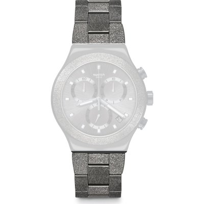 This Swatch watch strap is made of stainless steel and is attached to the watch by means of steel pins. The band has a width of 21 mm and is closed by means of a butterfly clasp with push buttons. The strap has no straight mount which means that this strap is only suitable for the watches listed below.