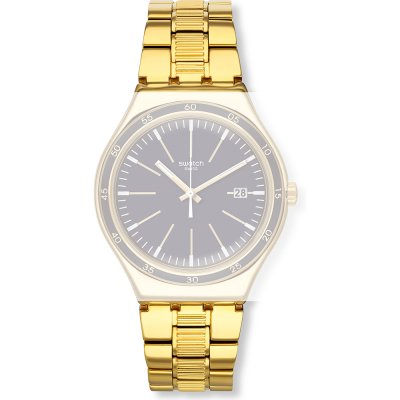 This Swatch watch strap is made of stainless steel and is attached to the watch by means of steel pins. The band has a width of 18.9 mm and is closed by means of a deployment clasp with safety. The strap has no straight mount which means that this strap is only suitable for the watches listed below.