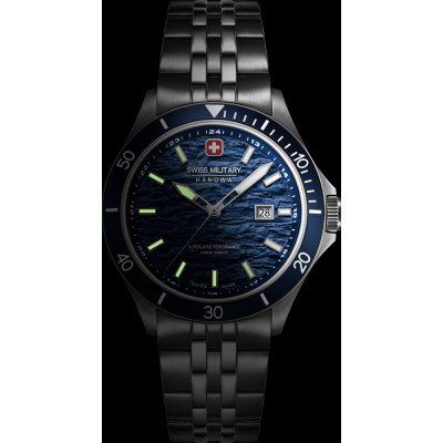 This Swiss Military Hanowa watch has a case made of stainless steel with a diameter of 42 mm and is fitted with a stainless steel band. Inside the case lies a Ronda movement and the watch features a Sapphire crystal.