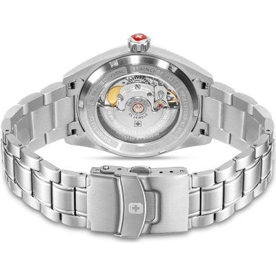 This Swiss Military Hanowa watch has a case made of stainless steel with a diameter of 41 mm and is fitted with a stainless steel band. Inside the case lies a Soprod movement and the watch features a Sapphire crystal.