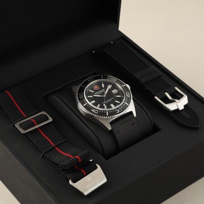 The watch is 10 ATM. This means the watch is suitable for swimming. The watch comes with Swiss Military 3+2.